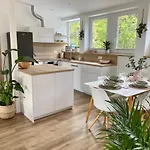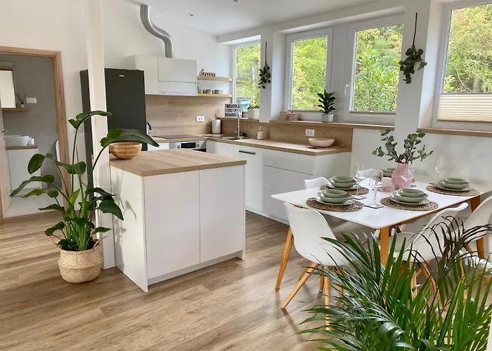 Apartmán Apartmán Sunny Oak Estate nabízí kompletní kuchyni i pokoje s pohovkou, pracovním stolem, přístrojem na přípravu kávy a čaje. Toto ubytování se nachází necelých 5 km od města Mengeš a nabízí vnitřní dvorek s výhledem na hory.